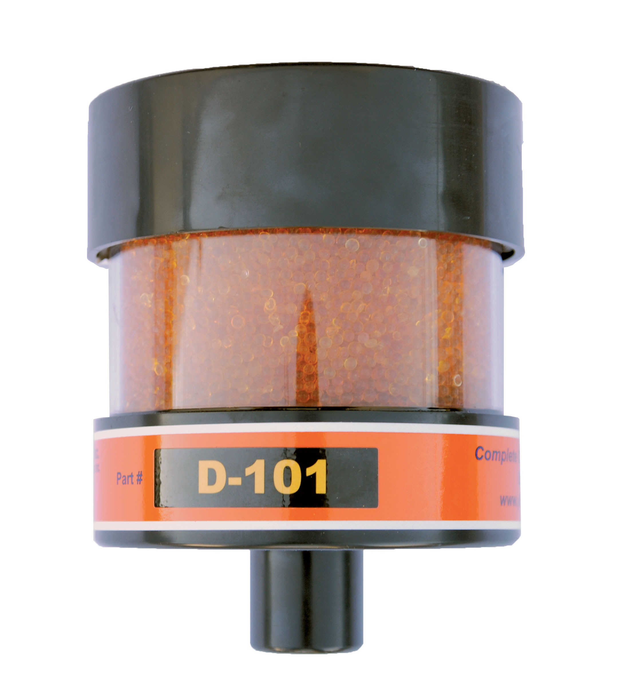 The D-Series is constructed of industrial grade raw materials and tested to ensure a wide range of chemical compatibilities. They feature high impact resistant ABS top and bottom caps. The clear acrylic tube makes it easy to inspect the condition of the color-changing silica gel from a distance. The silica gel turns from gold to dark green to visually indicate the adsorption of moisture and confirm the breather is getting the job done! All D-Series models feature 2-micron solid particle filtration and are available with airflow ratings of 20 cfm.